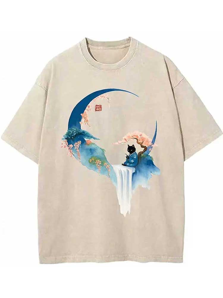 Tea And Tranquility: A Cat’s Zen Moment Washed T-shirt