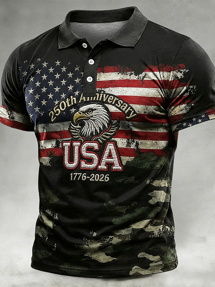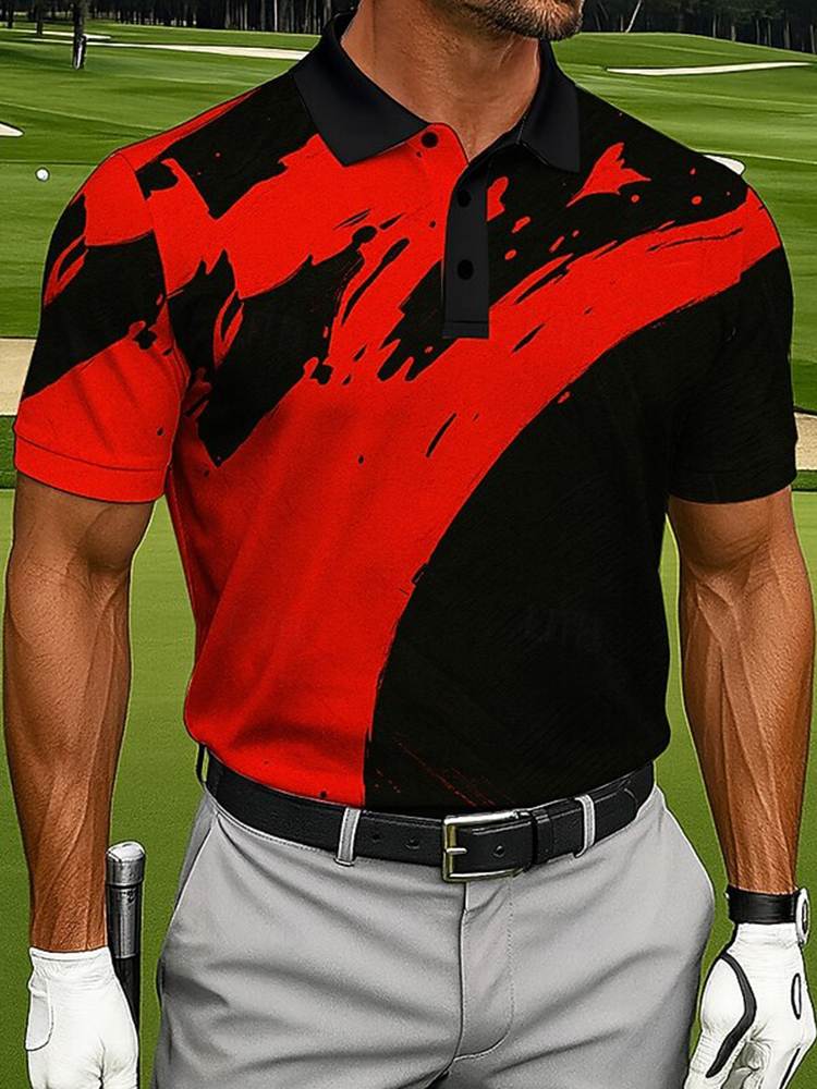 Men's Vintage Geometic Pattern Golf Sports Polo Shirt