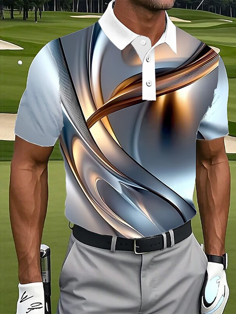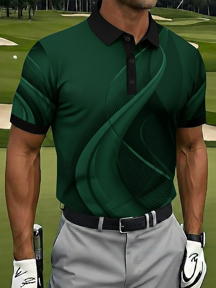 Men's Geometic Pattern Print Golf Sports Polo Shirt