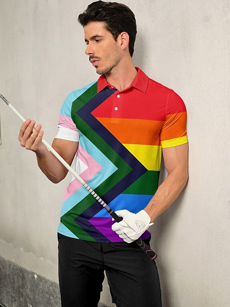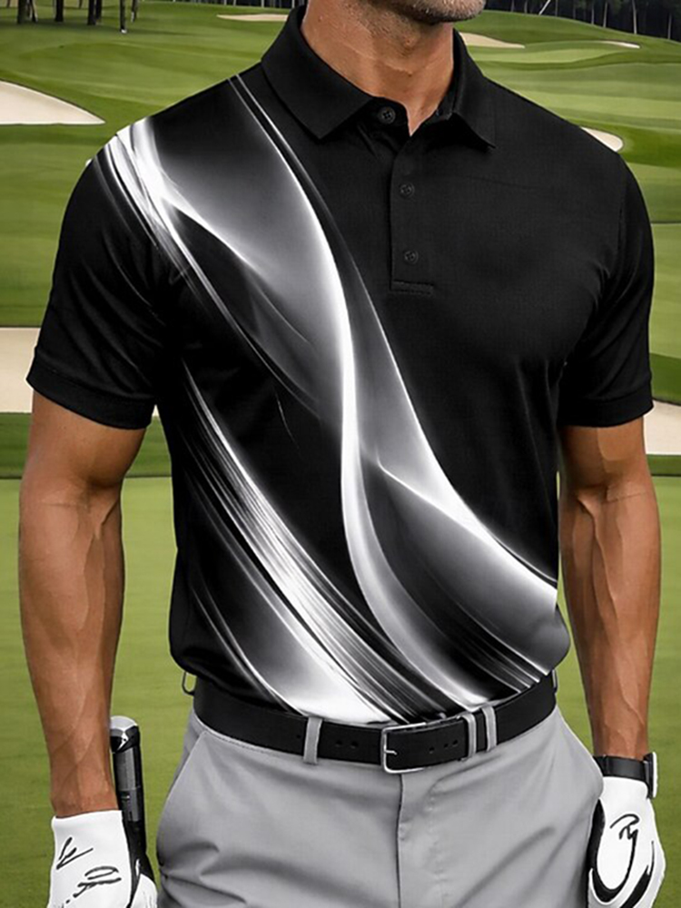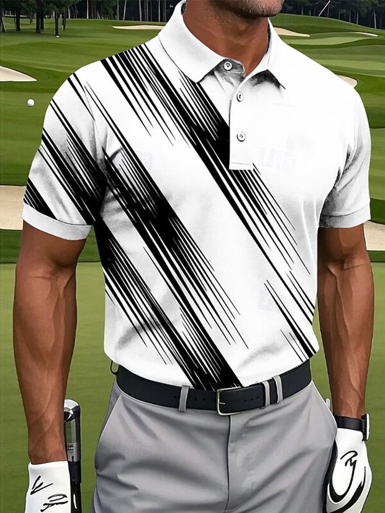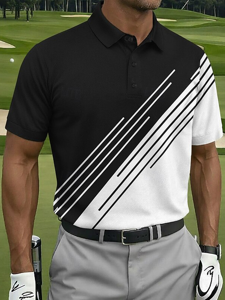 Men's Retro Line Pattern Golf Sports Polo Shirt