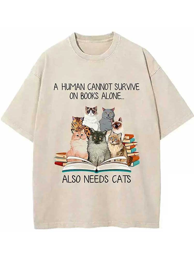 Men's Vintage Cat Riding Dinosaur Battle Print Japanese Style Art Print Casual Shirt