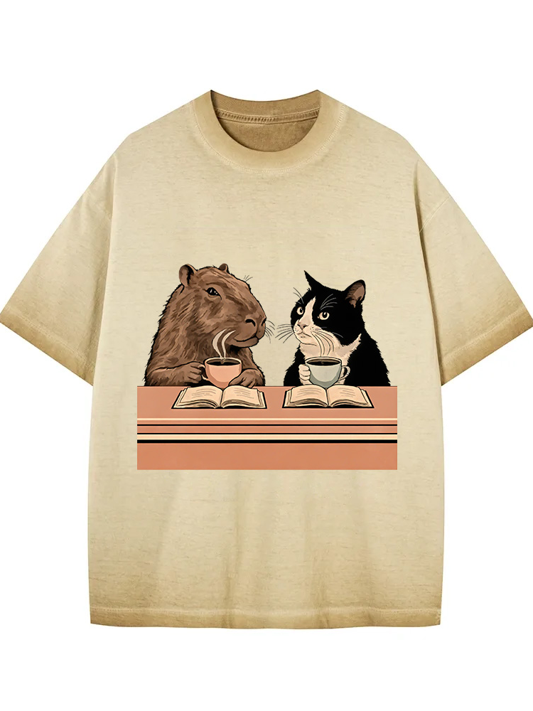 Capybara And Cat Talk Gradient Washed T-shirt