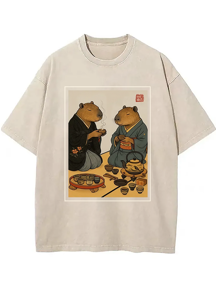 Capybara Tea Ceremony Washed T-shirt