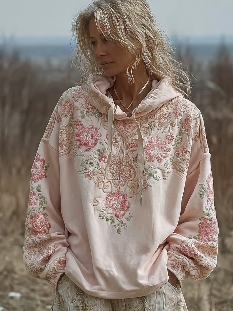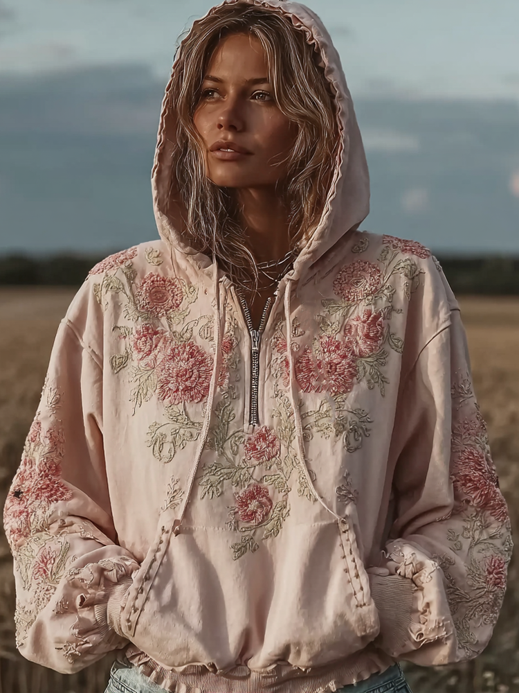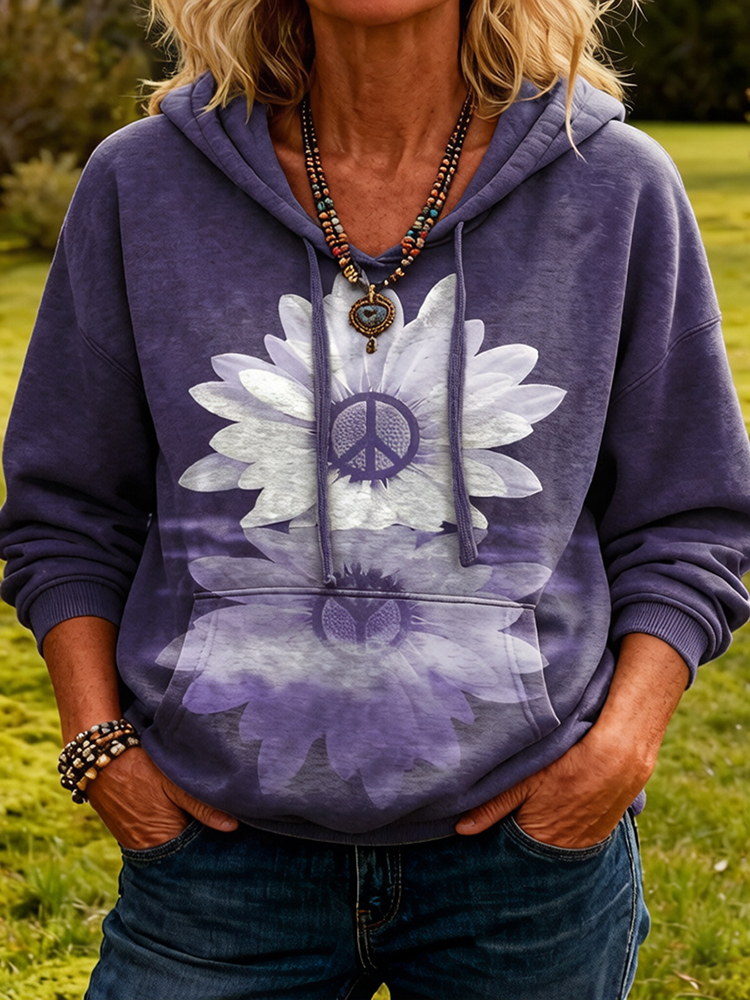 Bohemian Retro Style Plant Flower Design Women's Casual Hoodie