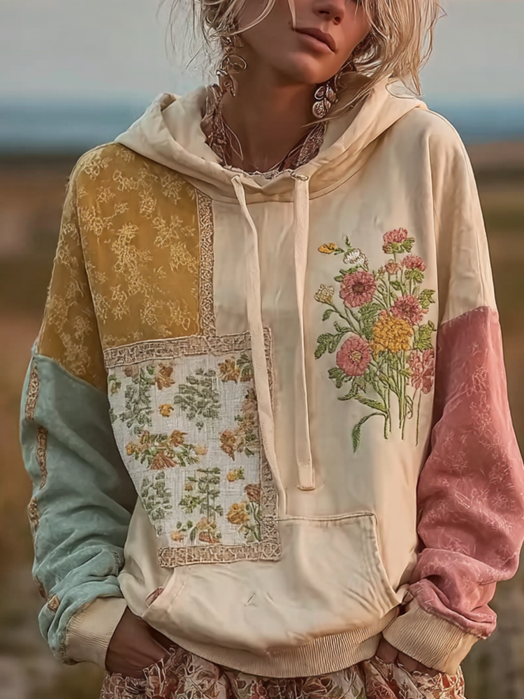 Bohemian Retro Style Plant Flower Pattern Design Casual Hoodie