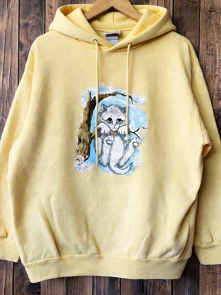 Opalite Kitten In Tree Vintage 90s Distressed Cat Art Cozy Hoodie