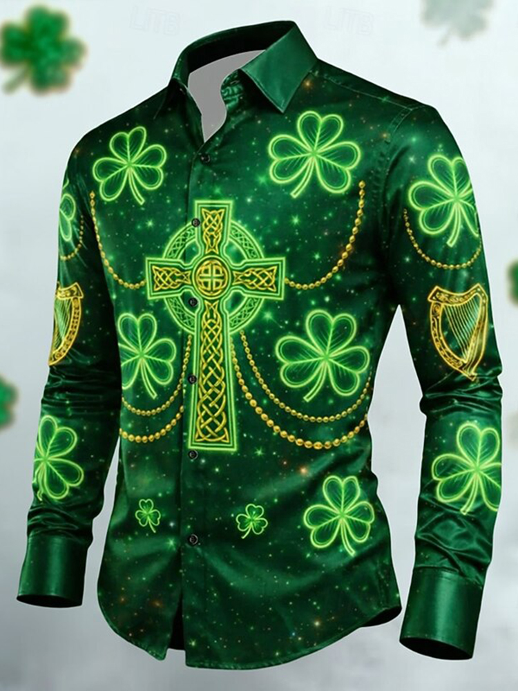 Men's St. Patrick's Day Shamrock Cross Art Long-sleeved Shirt