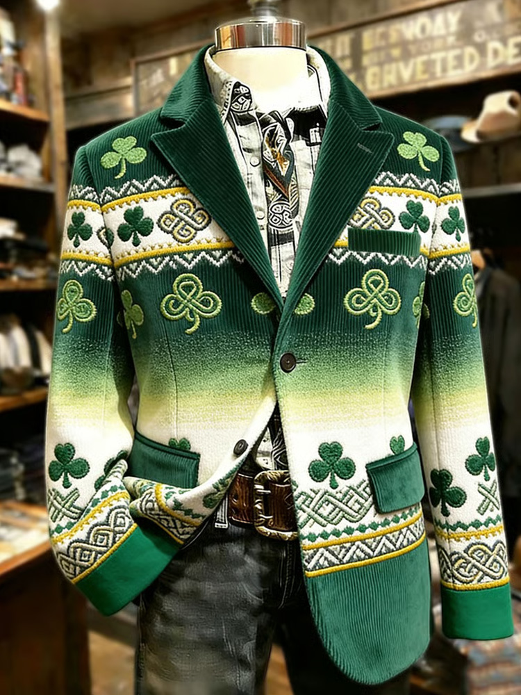 Men's Vintage Lucky St. Patrick's Day Party Corduroy Suit Jacket