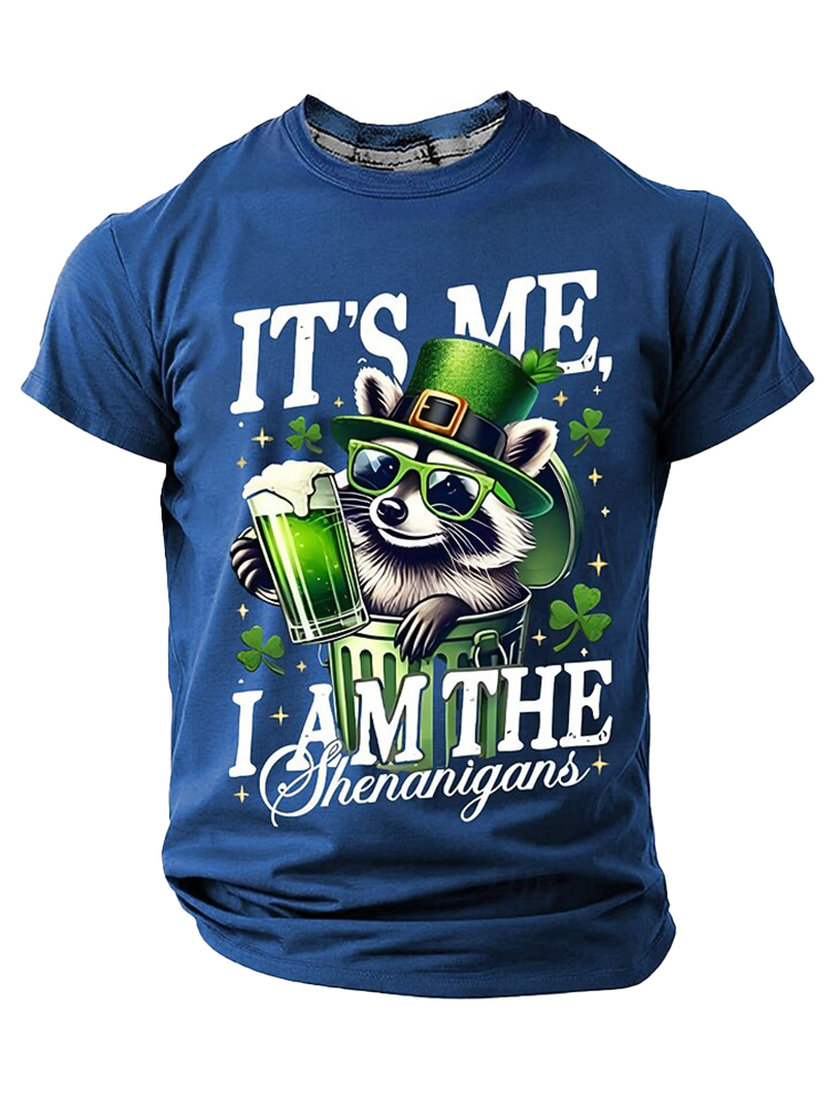 Men's Retro St. Patrick Day Its Me I Am The Shenanigans Funny Raccoon Leprechaun Hat Graphic T-shirt