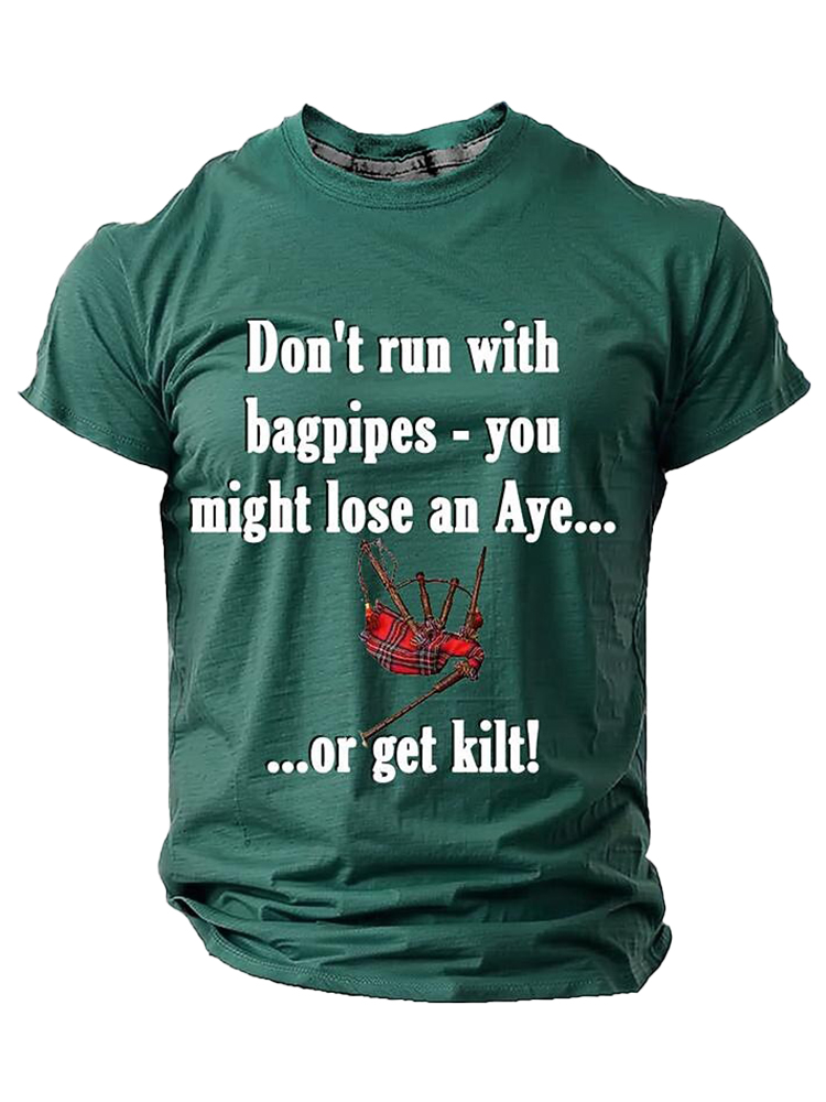 Men's Shamrock Don't Run With Bagpipes-you Might Lose An Aye Or Get Kilt Irish T Shirt Graphic T-shirt