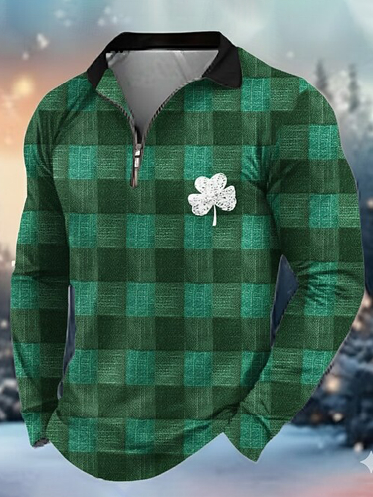 St. Patrick's Day Shamrock Print Casual Long-sleeve Shirt