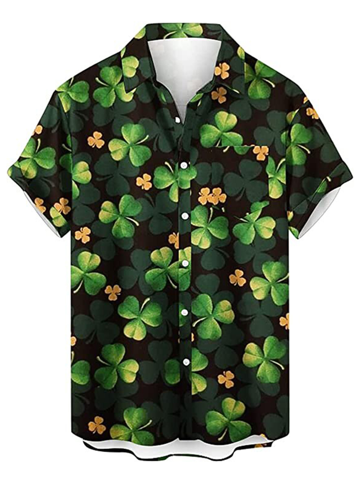 Men's St.patrick's Day Hawaiian Pocket Button Up Shirt