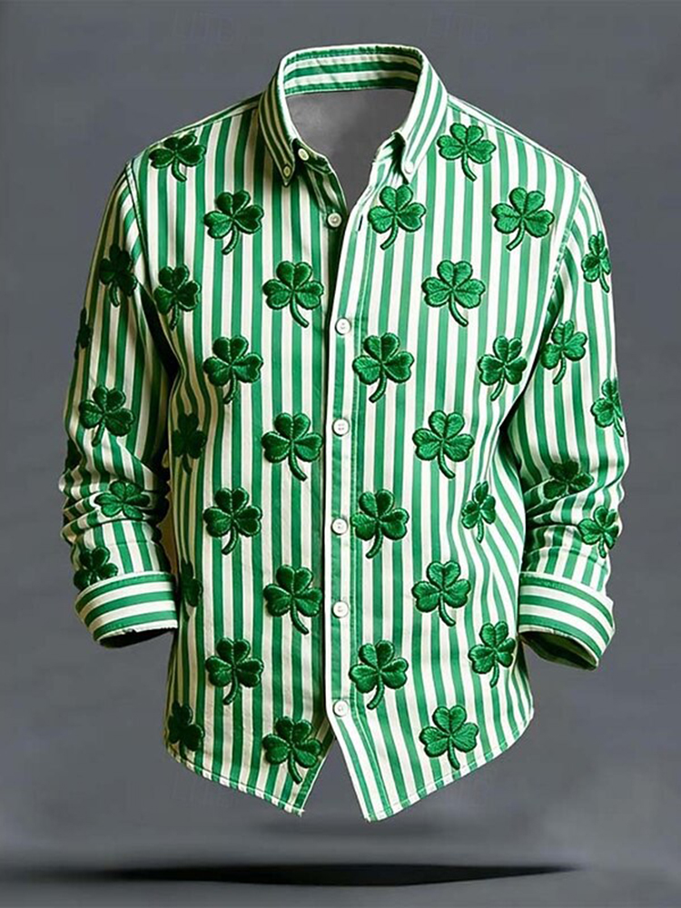 Men's St. Patrick's Day Shamrock Stripe Art Long-sleeved Shirt