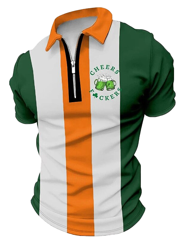 Men's Beer Saint Patrick Day St. Patrick's Day Zipper Up Polo Shirt