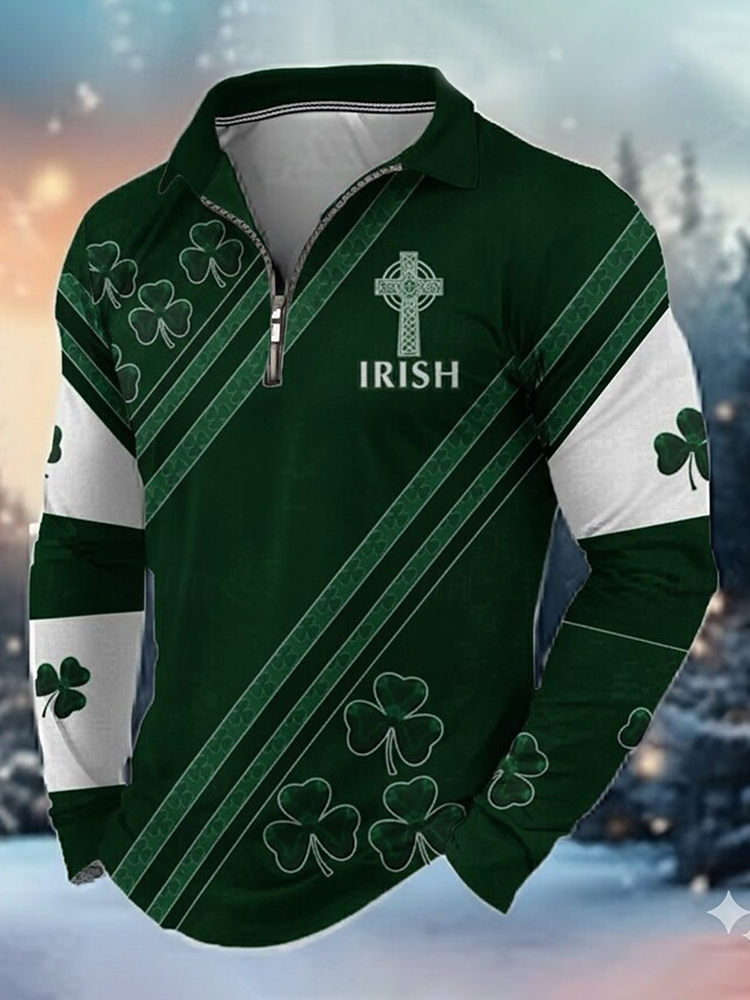 Men's St. Patrick's Day Printed Long-sleeved Shirt
