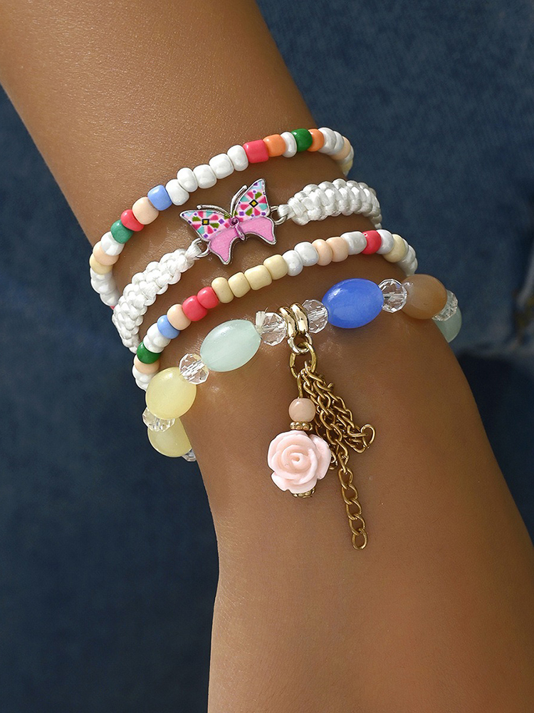 Bohemian Colorful Seed Bead Butterfly Rose Hand-woven Bracelet Set (4 Pieces)
