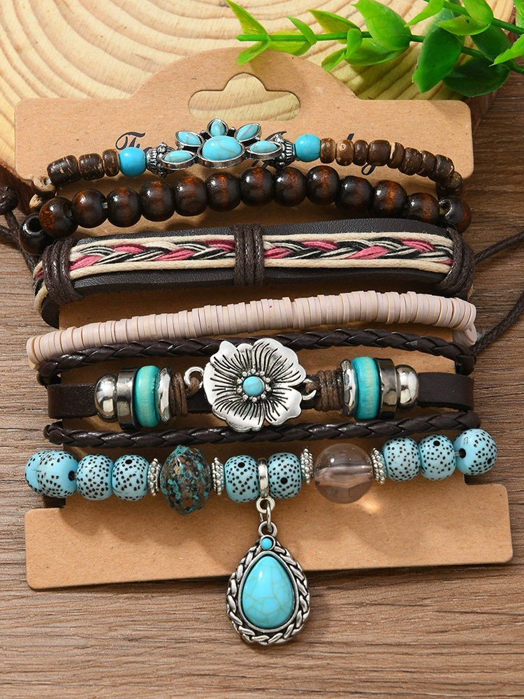 Bohemian Style Turquoise Flower Hand-woven Bracelet Set (6 Pieces)