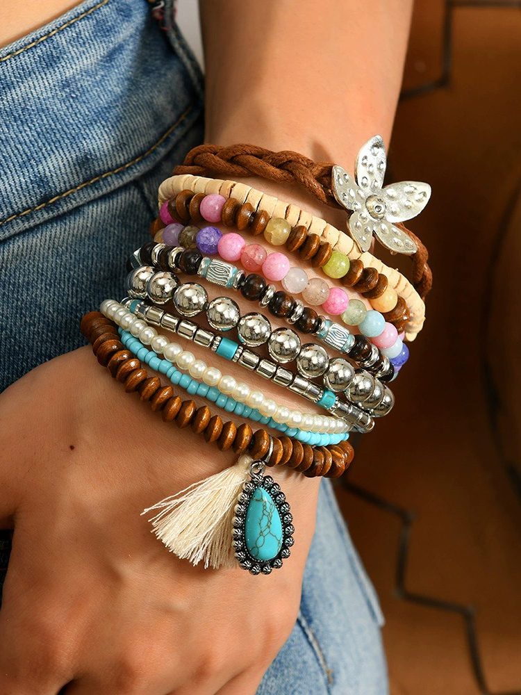 Bohemian Style Floral Tassel Handmade Beaded Bracelet 10-piece Set