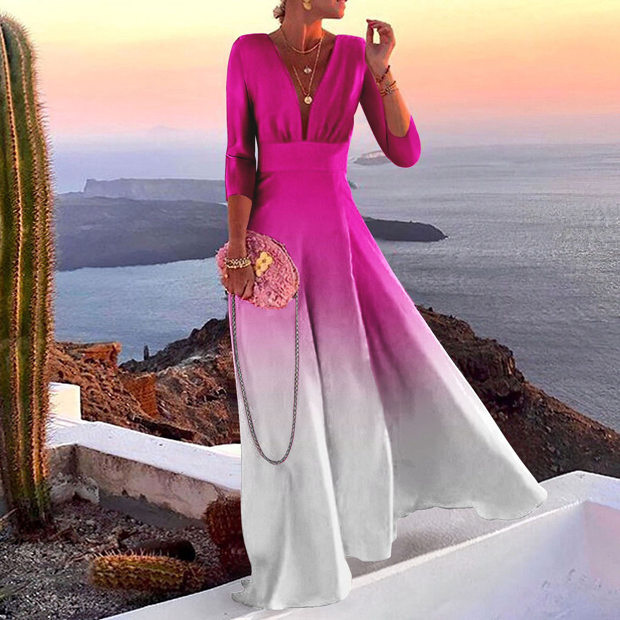 Elegant Rose And White Gradient Maxi Dress