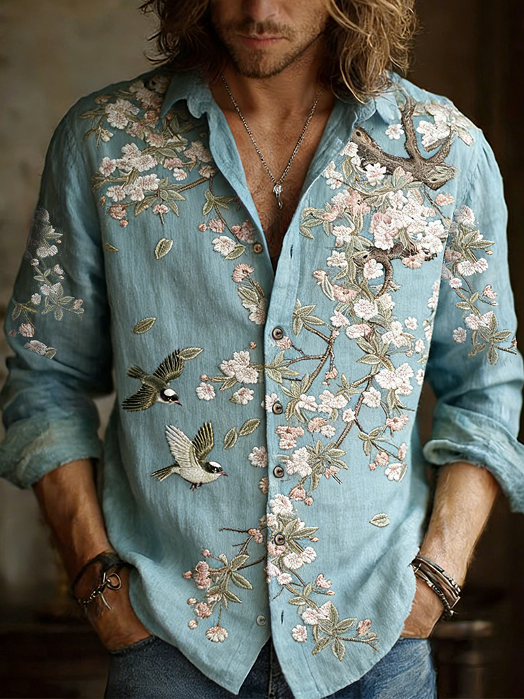 Men's Red Spider Lily Calligraphy Ink Painting Art Print Casual Shirt
