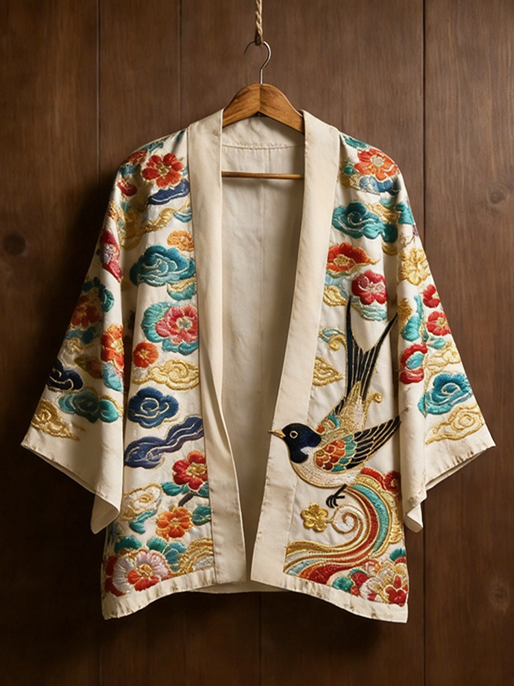 Japanese Art Retro Flower And Bird Pattern Cardigan