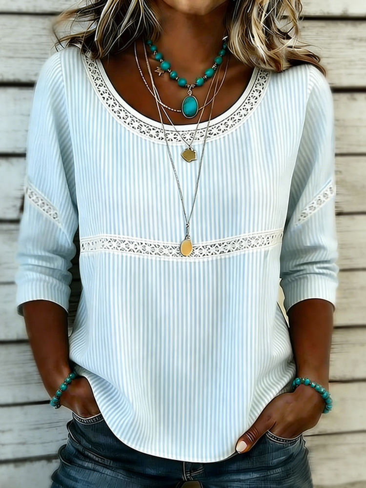 Women's Vintage Stripe Pattern Three-quarter Sleeve T-shirt