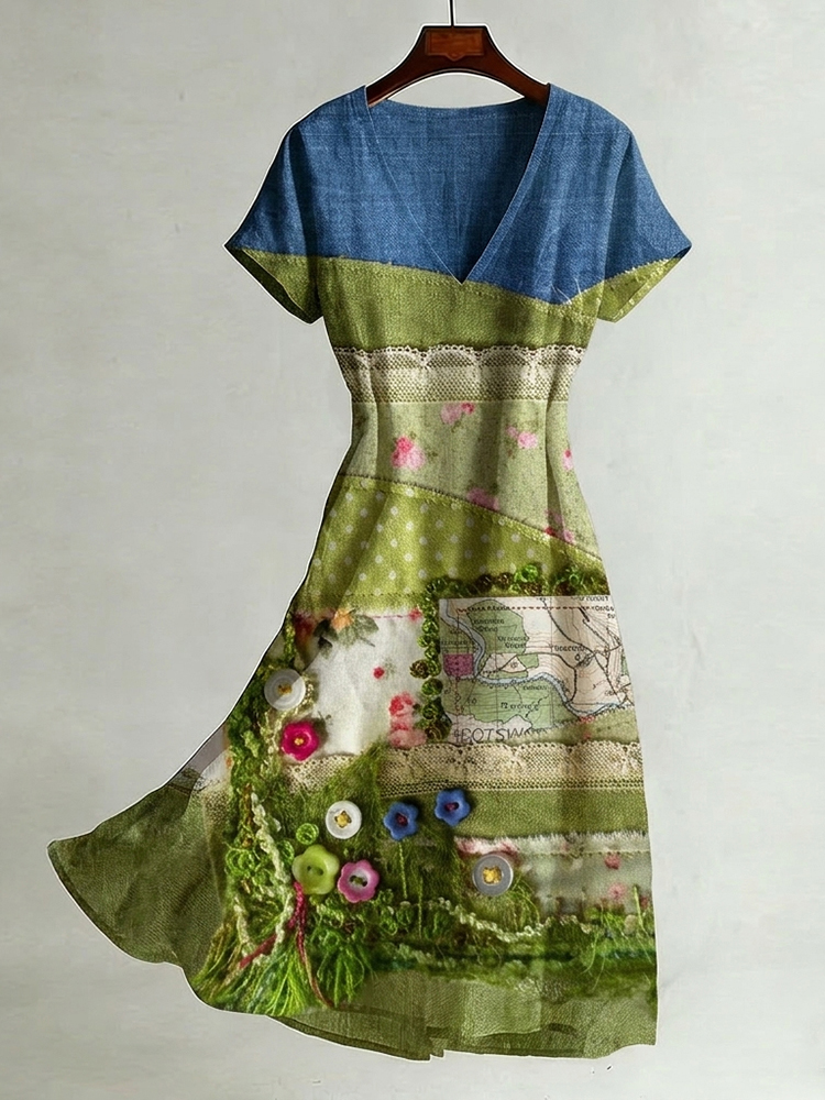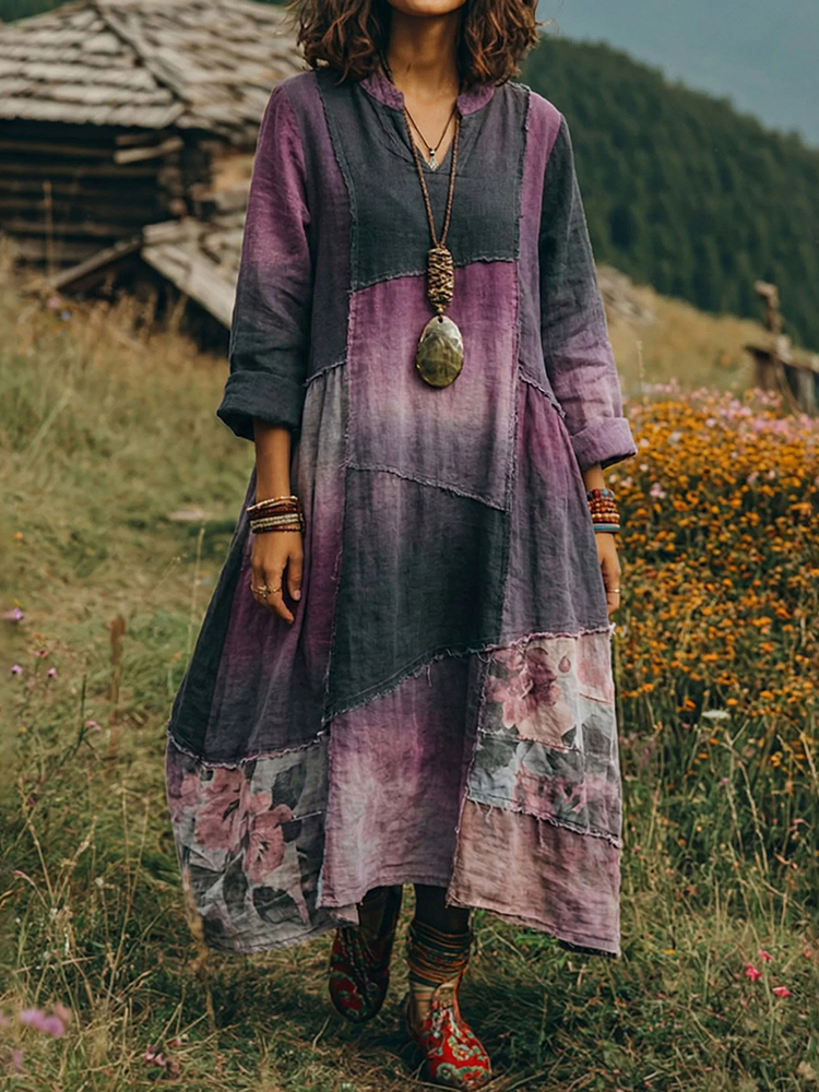 Women's Vintage Bohemian Floral Pattern Casual Linen Dress