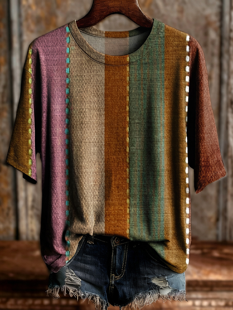 Women's Retro Ethnic Striped Casual Short-sleeve T-shirt