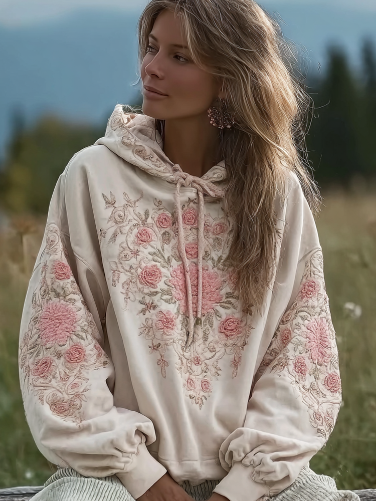 Bohemian Retro Style Plant Flower Design Women's Hoodie
