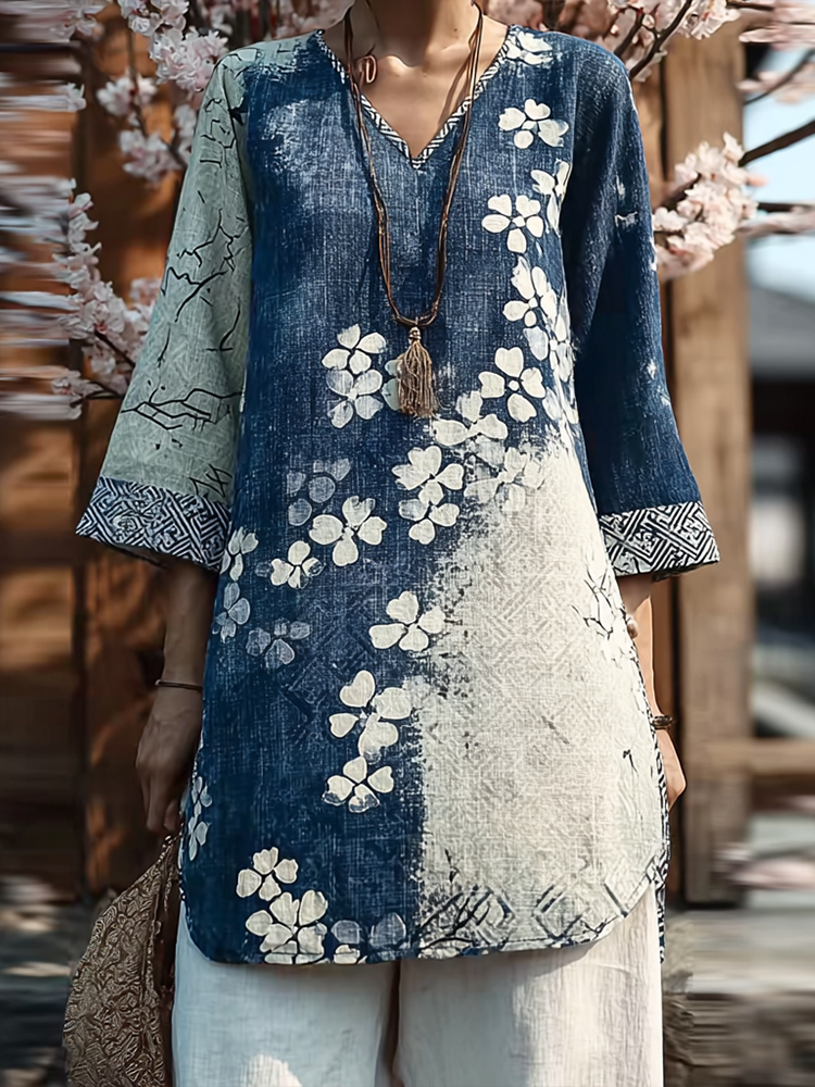 Women's Floral Print Linen Tops