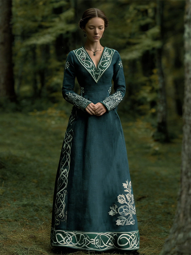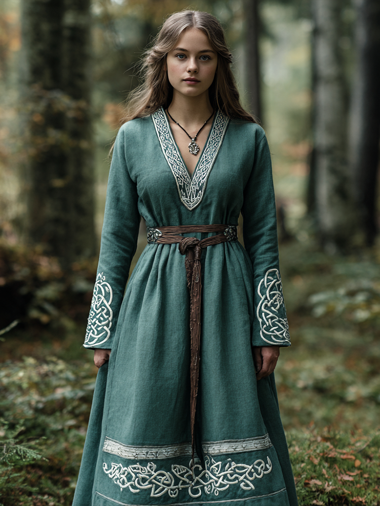 Vintage Viking Celtic Knot Women's V-neck Linen Dress