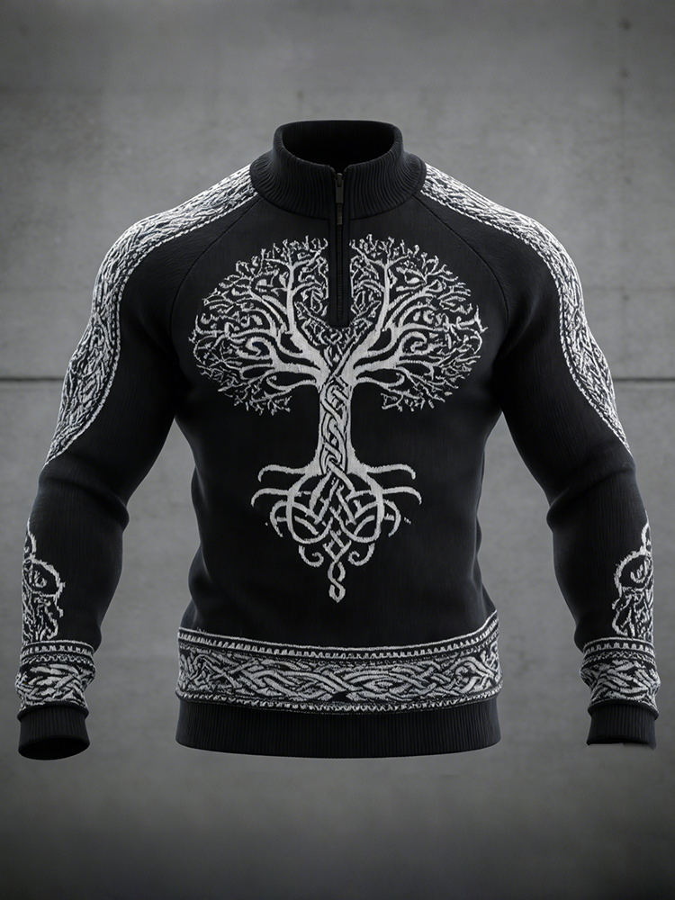 Men's Viking Celtic Life Of Tree Art Zipper Stand Collar Sweatshirt