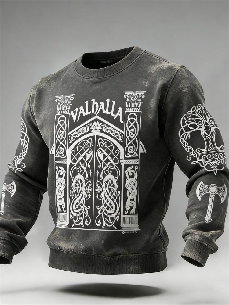 Men's Door Of Valhalla Tree Of Life Viking Washed Sweatshirt