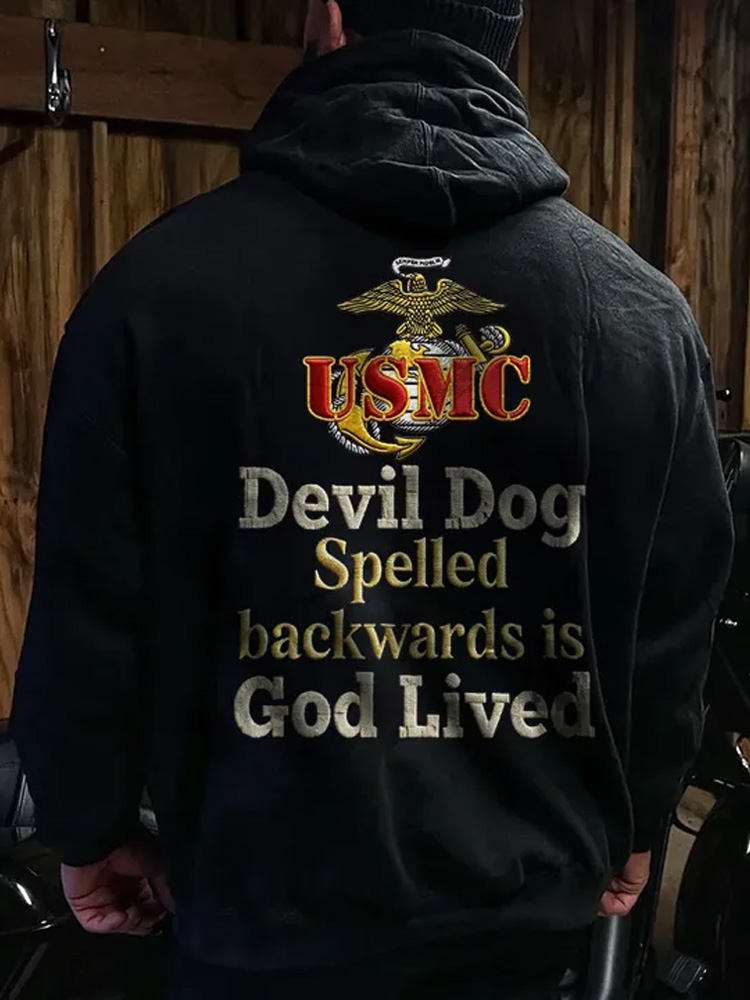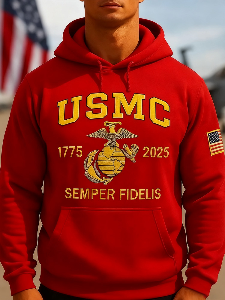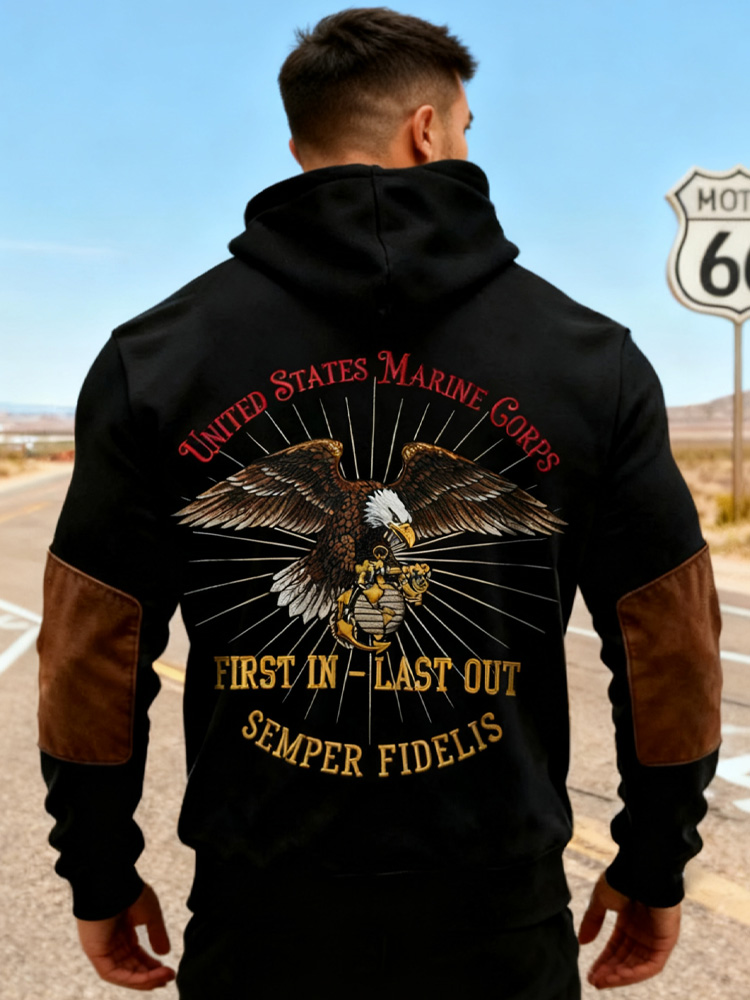 Usmc Eagle Embroidery Hoodie,first In - Last Out&semper Fidelis Motto Commemorative