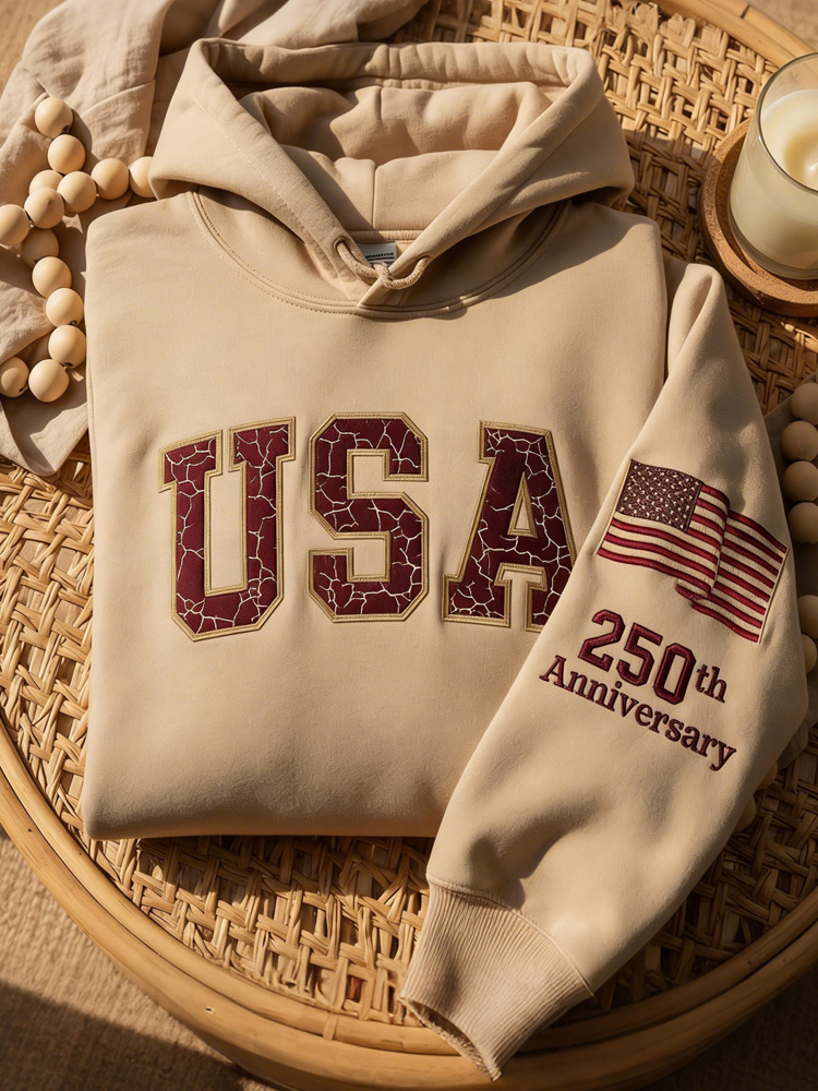 Men's Retro 250th Anniversary Printed Hooded Sweatshirt