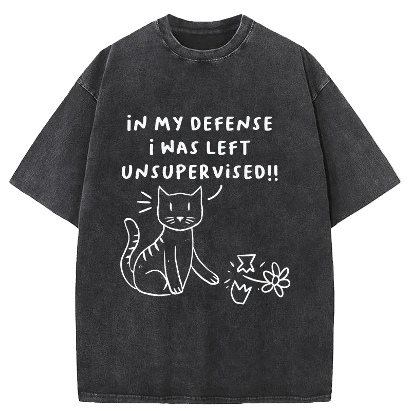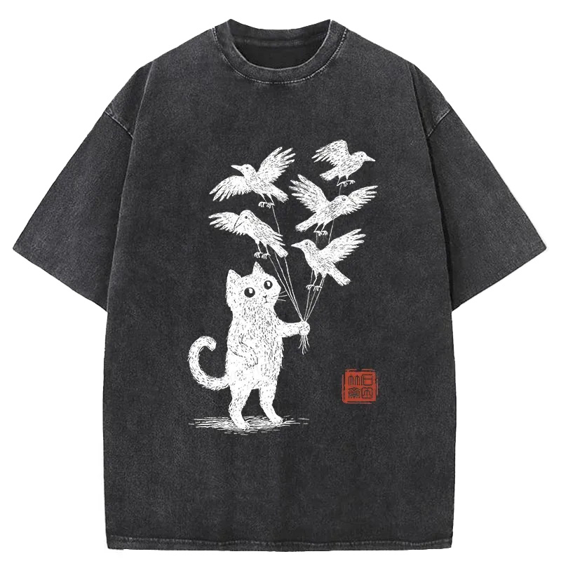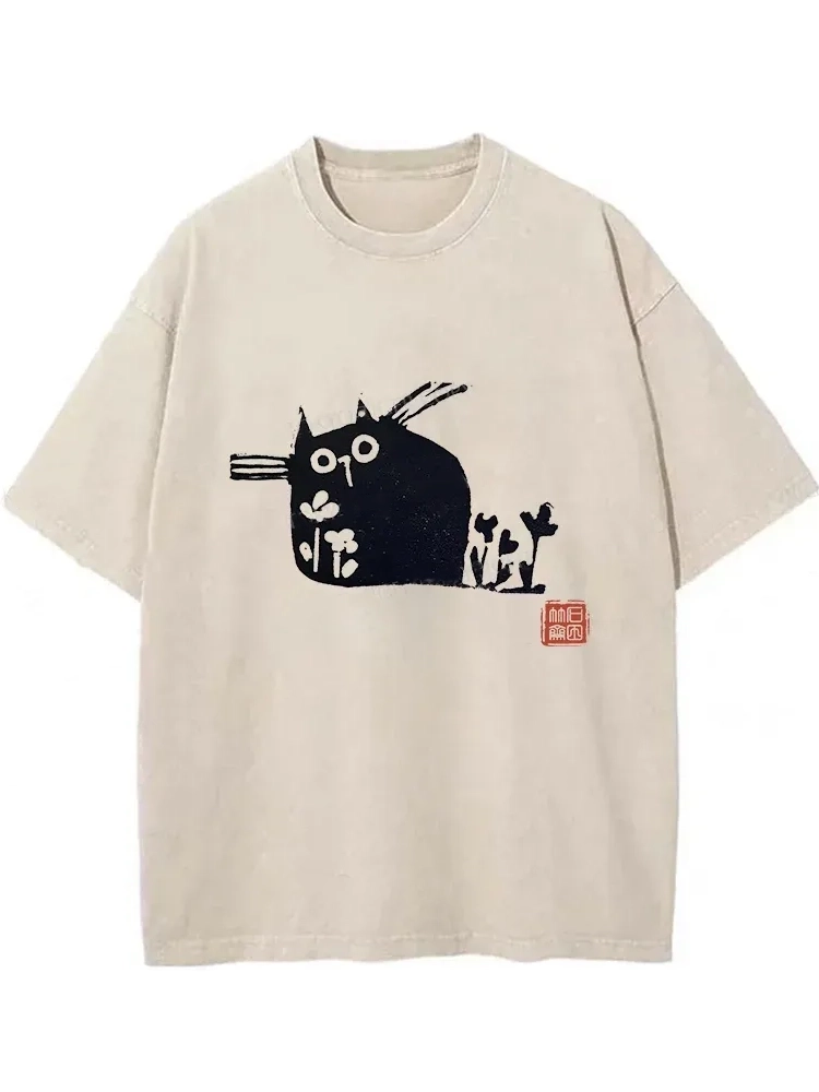Funny Heart-shaped Ink Cat Washed T-shirt