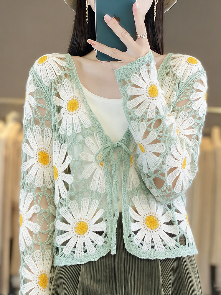 Bohemian Style Floral Design V-neck Long-sleeve Top