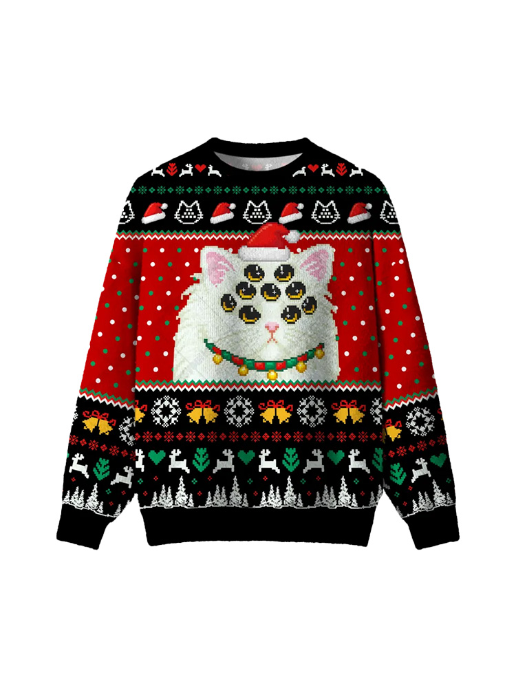 Multi-eyed Christmas Cat Ugly Christmas Sweatshirt