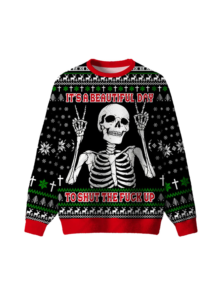 Beautiful Day Skeleton Ugly Christmas Sweatshirt