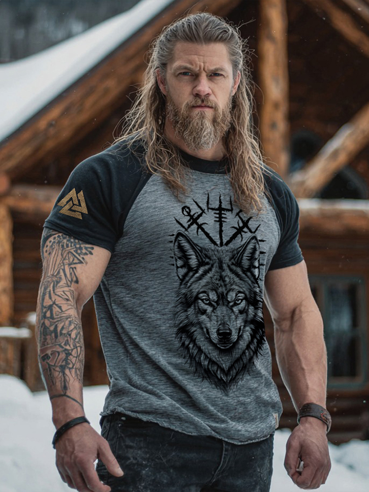 Men's Viking Vegvisir Wolf With Valknut Print Comfy Sports T-shirt