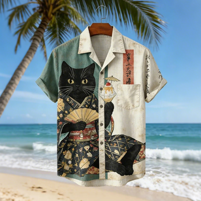 Pattern: Kimono Black Cat Japanese Calligraphy