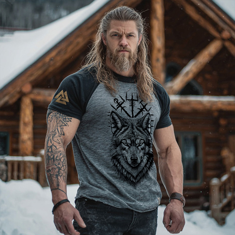 Pattern: Viking Vegvisir Wolf With Valknut Print