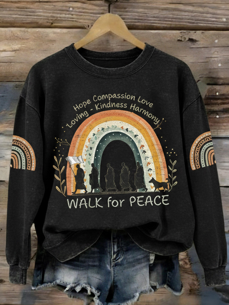 Women's Retro Walk For Peace Print Casual Sweatshirt