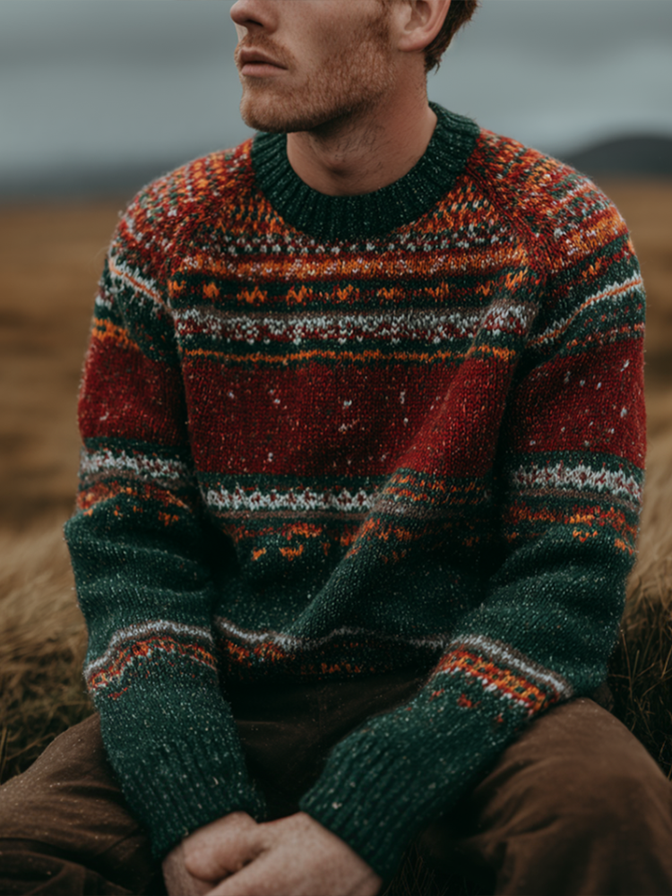 Men's Warmth Scandinavian Knit Jacquard Icelandic Art Cozy Knit Sweater