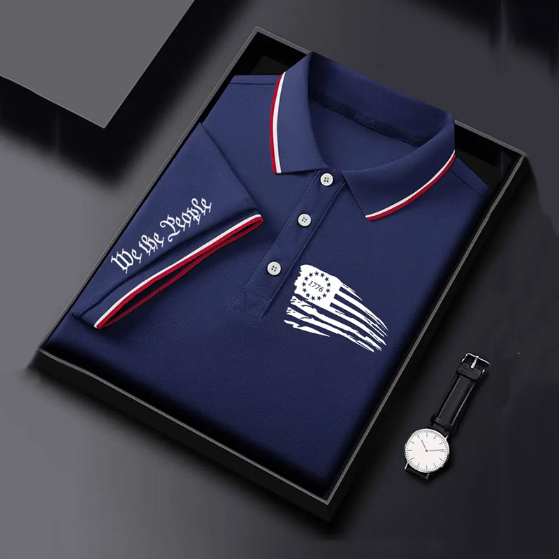 Men's Independence Day Flag 1776 Print Polo Shirt