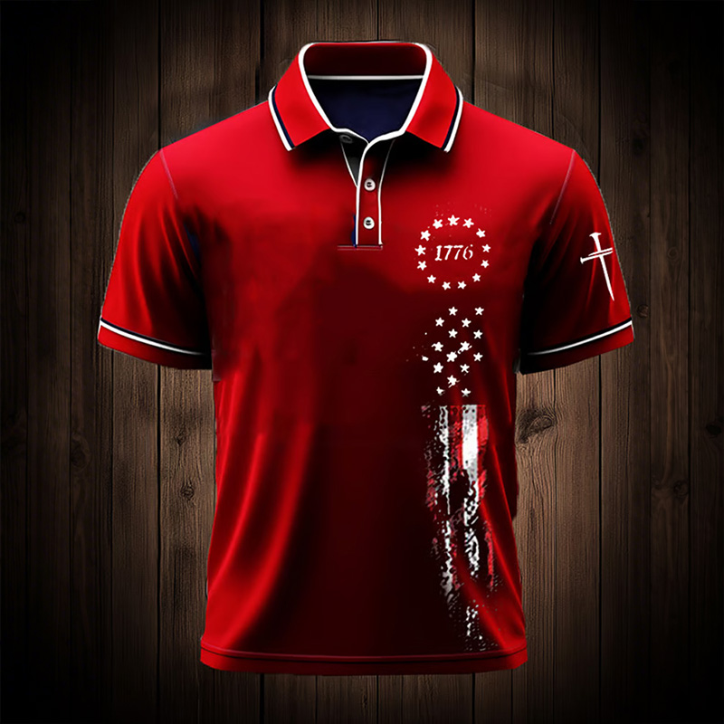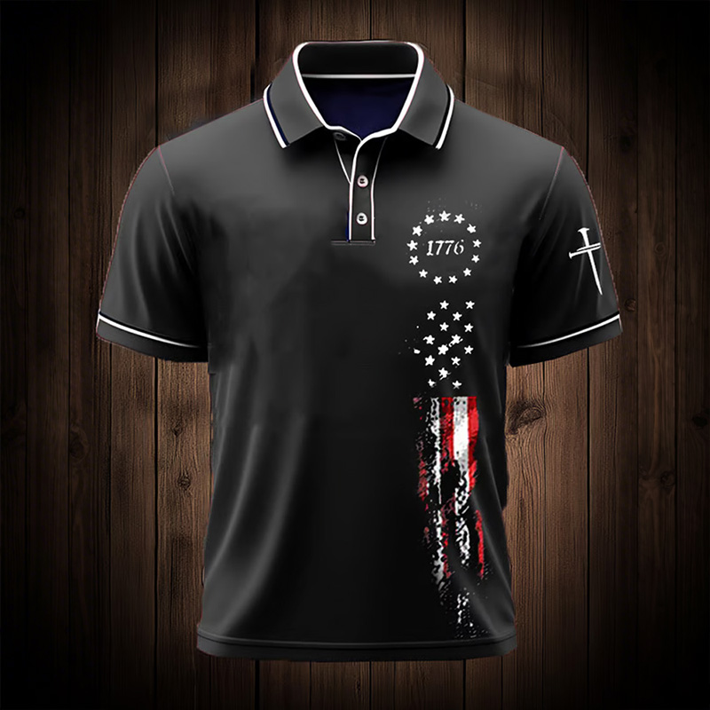Men's Independence Day Flag Print Casual Polo Shirt