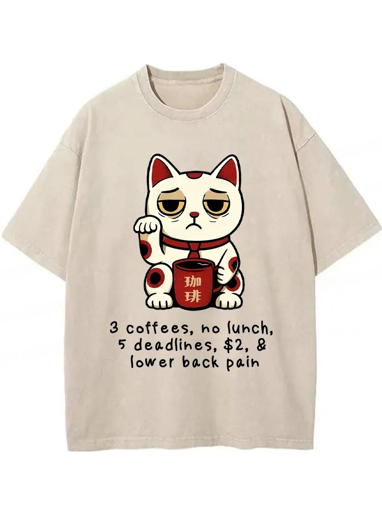 Funny Workaholic Lucky Cat Washed T-shirt