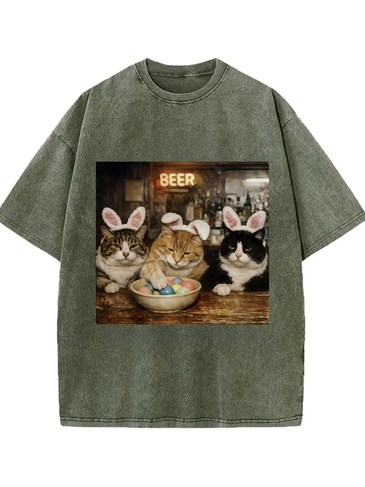Funny Easter Cats Washed T-shirt