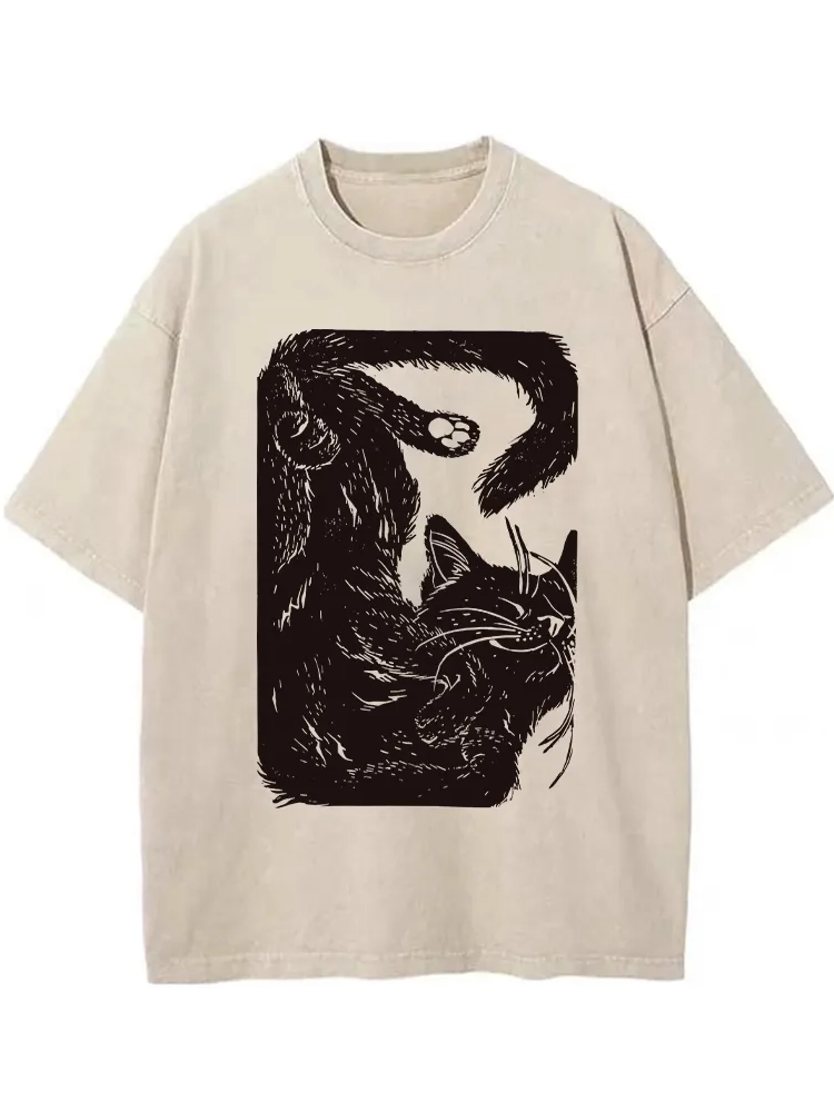 Funny Sleeping Cat Washed T-shirt