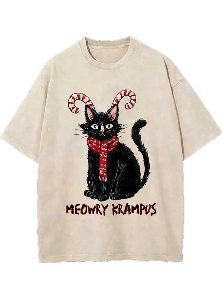 Meowry Krampus-the Festive Rebel Washed T-shirt
